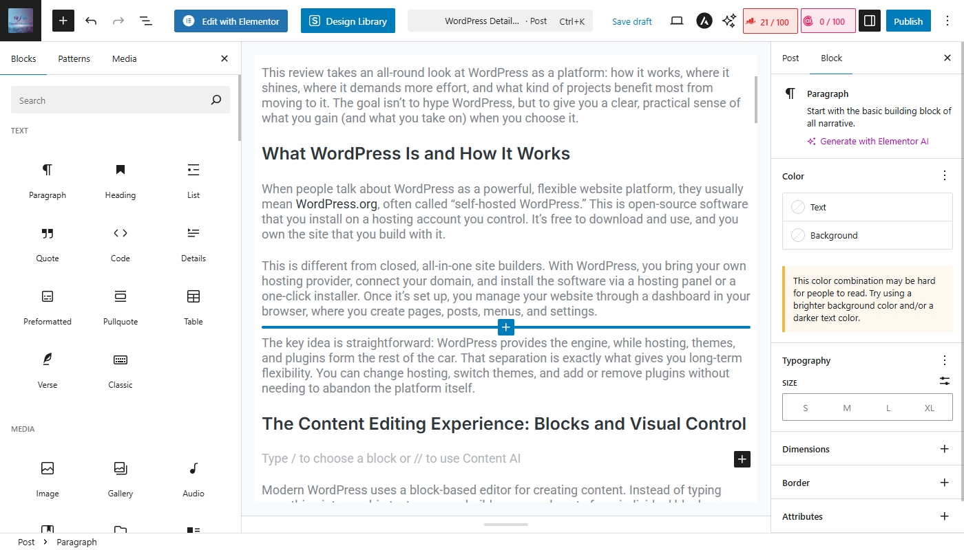 This review takes an all-round look at WordPress as a platform: how it works, where it shines, where it demands more effort, and what kind of projects benefit most from moving to it. The goal isn’t to hype WordPress, but to give you a clear, practical sense of what you gain (and what you take on) when you choose it.